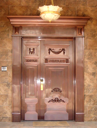 整板壓花銅門